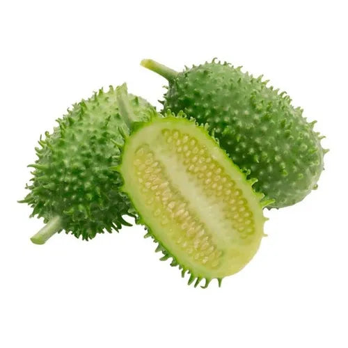 🥒 Frutos verdes, pequenos e espinhosos, padrão típico do maxixe nordestino